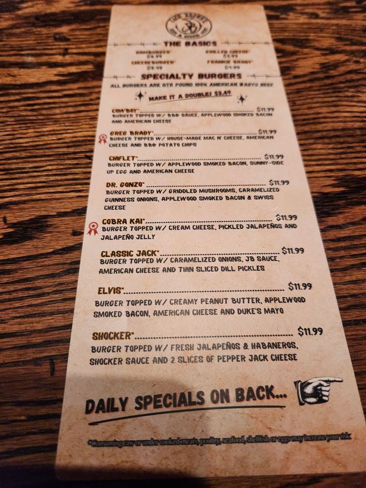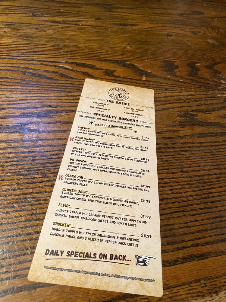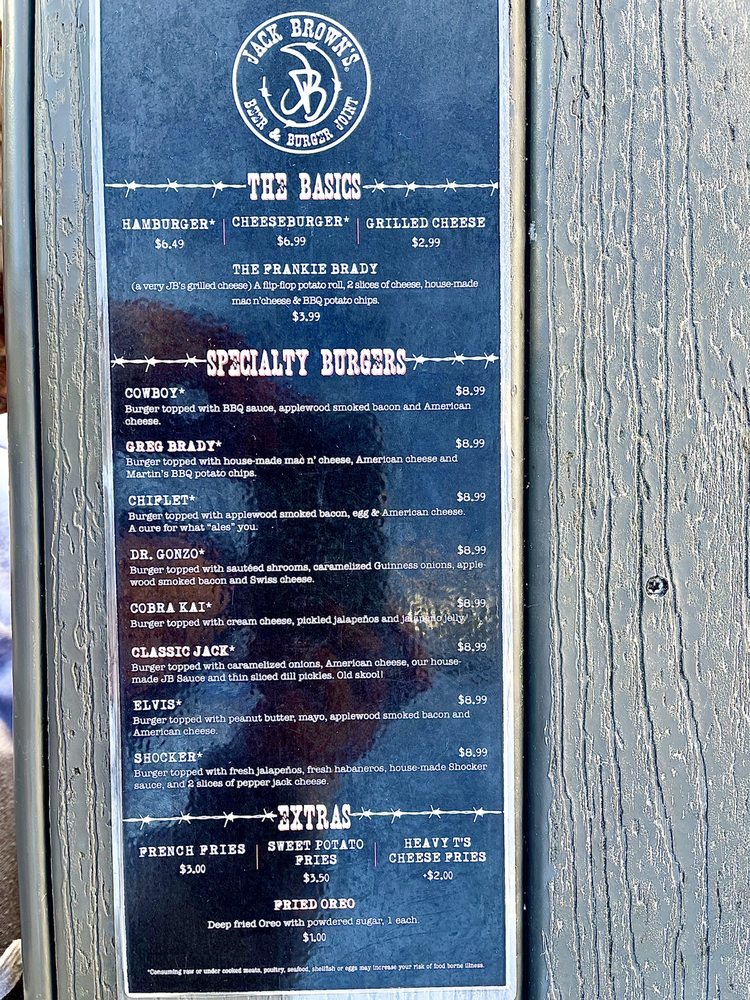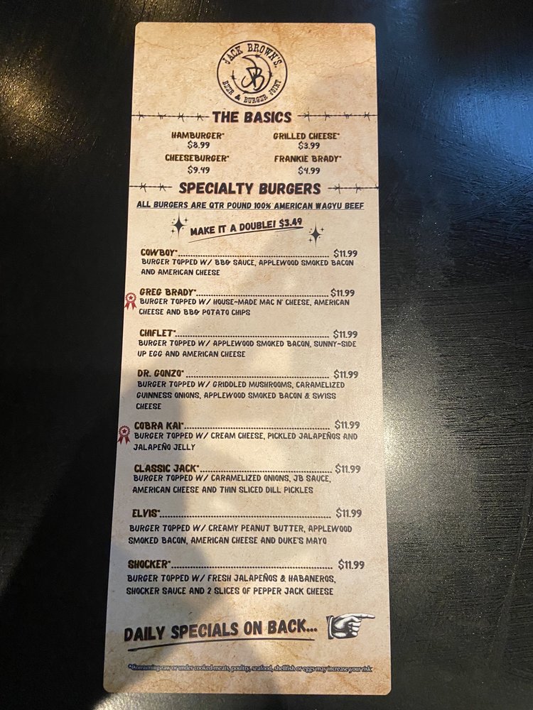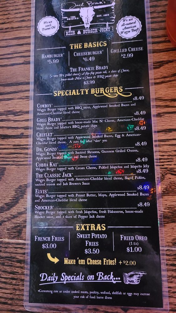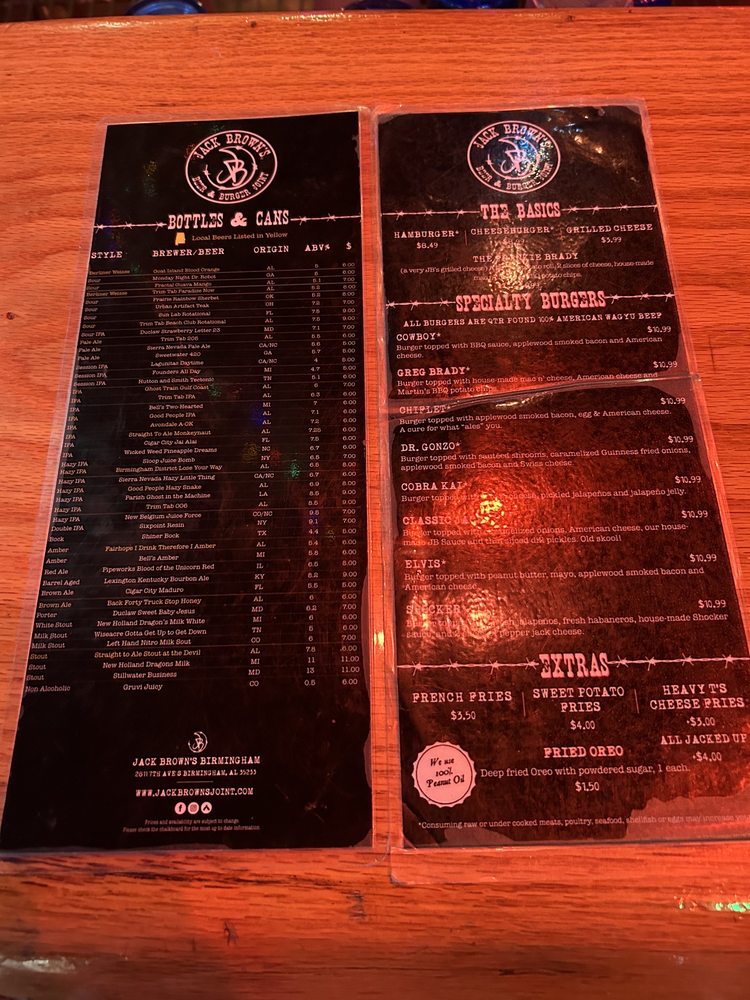 Jack Brown’s Beer & Burger Joint - Birmingham Menu
